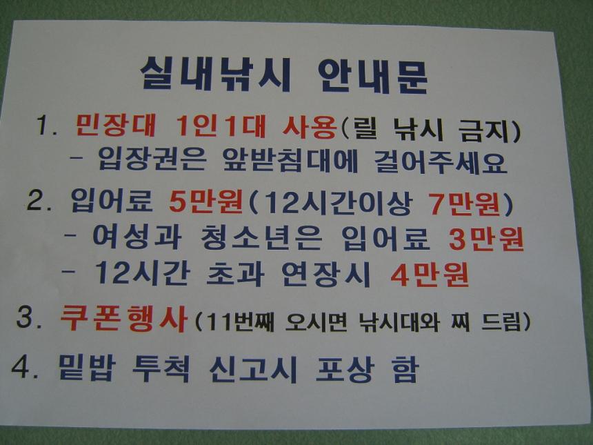 Âü°í»çÇ× : ³¬½Ã¿¡ µµ¿òÀÌ µÇ°íÀÚ ¾Õ¹Þħ´ë¸¦ ¼³Ä¡ÇÏ¿´À¸¸ç, ÄèÀûÇÑ È¯°æÀ» À§ÇÏ¿© ½Ç³»¿¡¼ Ãë»ç¸¦ ±ÝÁöÇϰí ÀÖ½À´Ï´Ù...