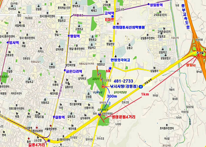 õȣ´ë·Î ±æµ¿ »ýŰø¿ø4°Å¸® --> °í´ö¿ª ¹æÇâ(ÇÑ¿µ¿Ü±¹¾î°í, E¸¶Æ® ¹æÇâ)À¸·Î 300m¿¡ À§Ä¡