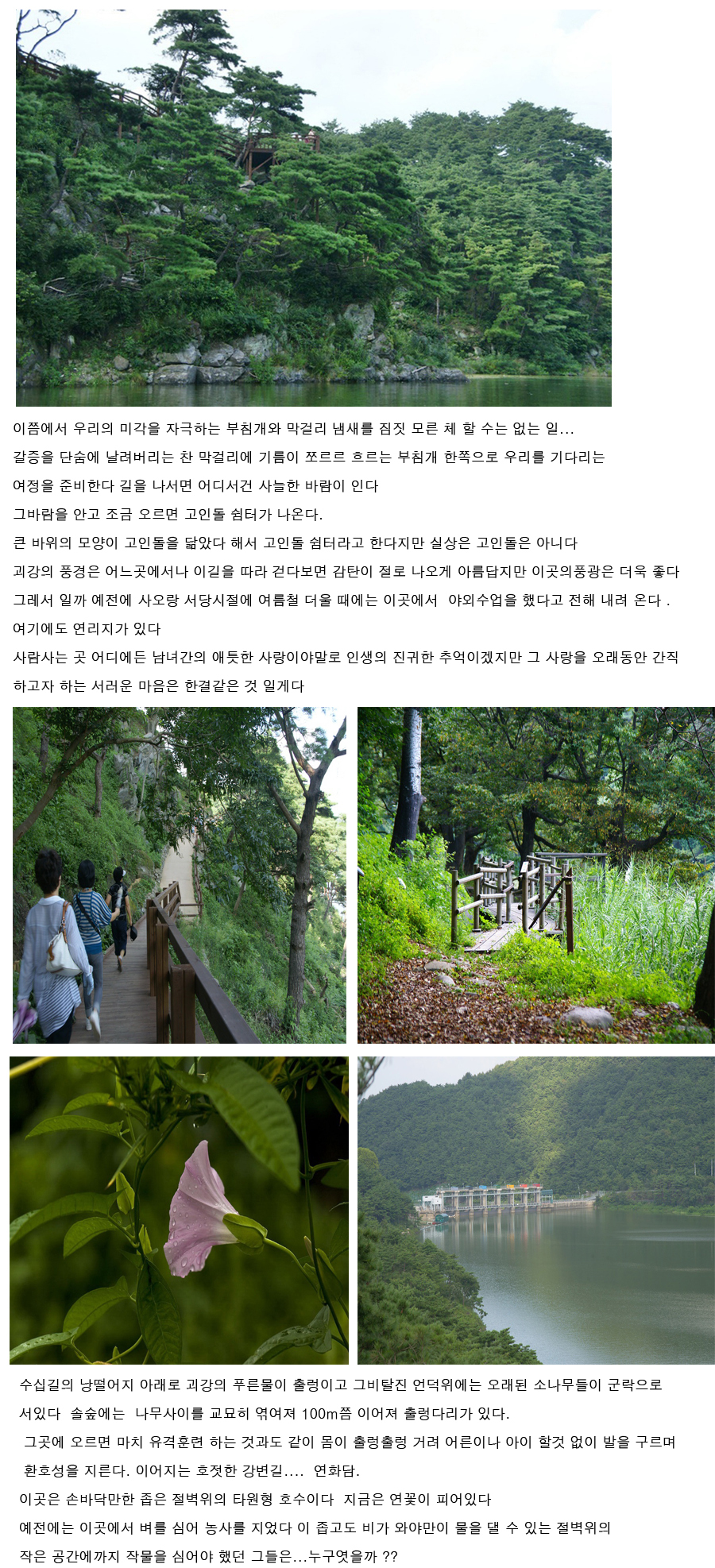 µµ½ÃÀÇ °í´ÞÇÄÀ» Ç®¾îÁ٠õ¿¬ÀÇ ¾Æ¸§´Ù¿ò, ¹«½¼ À̾߱âµç Ç®¾î³õ°í ½ÍÀº ºÐÀ§±â, È£Á£ÇÏ°Ô ¾É¾Æ ÁÖ¸Ô¹äÀ» ¸ÔÀ¸¸ç ¿©À¯À» Áñ±æ ¼ö Àִ°÷, Áö³ª¿Â ¿ª»ç¸¦ µ¹¾Æº¼ ¼ö ÀÖ´Â À¯ÀûÀÌ ÀÖ´Â ±×·± °÷À̳׿ä. Á¤¸» Ä£±¸µéÀ̶û ½Ê´ë·Î µ¹¾Æ°¡ õÁø³¸¸ÇÏ°Ô ³ë¸±´Ù ¿À°í ½ÍÀº °÷À̳׿ä. ¶ÇÇÑ ÁÖ¸·ÀÌ ÀÖ¾î ´õ´õ¿í dz¹Ì¿Í ¿¾Á¤¼¿Í ¿©À¯¸¦ ´õÇØ ÁÙ °Í °°Àº °÷ÀÏ °Í °°°í¿ä. ÀÏ»óÀÇ ±ÇÅ·οòÀ» Á¶±ÝÀº ÅоÁÖ´Â ÀÚ¿¬°ú ±ÛÀ̾ú½À´Ï´Ù. ¾ðÁ¦³ª ÁÁÀº ÀÚ·á ¸¹ÀÌ ¿Ã·ÁÁÖ¼¼¿ä. ¿Õ ÆÒÀÌ µÉ °Í °°±º¿ä. ²ß»¶ ²ß»¶