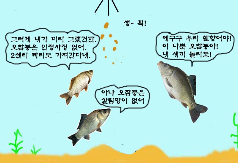 - ´ë³¬½Ãµç ¸±³¬½Ãµç ¹Ì³¢°¡ ³Ê¹« °í¼ÒÇÏ°í ´Þ¼ö·Ï ÀÛÀº °í±â¿¡°Ô ¸ÕÀú »©¾Ñ°Ü ¹ö¸°´Ù. - ÀÔÁúÀÌ ¶äÇÒ ¶§³ª »õº®¿¡´Â »õ·Î¿î ¶±¹äÀ» °³¾î ¾²¸é ÀÔÁúÀÌ ´Ù½Ã ½ÃÀ۵Ǵ °ÍÀ» ¾Ë ¼ö ÀÖ´Ù. - ºØ¾î°¡ ¿¹½Å ¶§´Â Ç®¾îÁø ¶±¹ä°¡·ç¸¦ ÀÏÂ÷ÀûÀ¸·Î ¾àÇÏ°Ô ÈíÀÔÇÏ¸é¼ Å½»öÇÏ´Ù°¡ ±× ¶±¹äÀÌ ¸ÔÀ» ¸¸ÇÏ¸é ºñ·Î¼Ò ³ª¸ÓÁö ¶±¹äÀ» ÀÔ ¼ÓÀ¸·Î Áý¾î³Ö°Ô µÈ´Ù. µû¶ó¼ ´Ü´ÜÇÑ ¶±¹äÀº ±×¸¸Å ÀÔÁúÀÌ ´Ê°Ô µÈ´Ù. - ¶±¹äÀÇ Å©±â´Â ¹Ù´ÃÅ©±âº¸´Ù 1.5¹è-2¹è Á¤µµ°¡ Àû´çÇϳª ¿¹¹ÎÇÑ ÀÔÁúÀÏ ¶§´Â ¹Ù´ÃÀÇ ¹Ý Á¤µµ Å©±â±îÁö ÀÛ°Ô ´Ü´Ù. - ¹Ù´Ã ³¡Àº ¶±¹ä¿¡ ¹¯Çô¼ ¾Èº¸À̵µ·Ï ÇÑ´Ù. - óÀ½¿¡´Â ¹Ø¹ä »ï¾Æ Ǫ¼®Çϰí Å©°Ô ´Þ¾Æ ¿ ¹ø ÀÌ»ó ´øÁ®ÁÖ´Ù°¡ ÀÔÁúÀÌ ½ÃÀ۵Ǹé Á¶±Ý ´õ ÀÛ°í ¸»¶ûÇÏ°Ô ÇÑ´Ù. ±×·¸´Ù°í ³Ê¹« ÀÛ°Ô ´Þ¸é ¹Ø¹äÀÇ È¿°ú°¡ °¨¼ÒÇÏ°Ô µÈ´Ù. - ¶±¹ä³¬½Ã´Â ¸ð¾Æ¼ ÇÏ´Â ³¬½ÃÀÌ´Ù. ±×·¯¹Ç·Î ÇѰ÷¿¡ ÁýÁßÀû(¹Ý°æ 50cmÀ̳»)À¸·Î ¶±¹äÀÌ ¶³¾îÁö°Ô ÇÑ´Ù. - ¾ç½Ä Çâ¾î³ª À׾ ÀÖ´Â Àú¼öÁö¿¡¼´Â ±× ޽ļº ¶§¹®¿¡ ºØ¾î°¡ ¹Ì³¢¿¡ Àß Á¢±ÙÇÏÁö ¾ÊÀ¸¹Ç·Î ºØ¾î¸¸ ³ë¸± ¶§´Â ¾îºÐÀÌ ¹Ù´Ú¿¡ ¸¹ÀÌ ±ò·ÁÀÖ´Â °÷À» ÇÇÇÏ¸ç ¶±¹ä¿¡ ¾îºÐÀ» ¼¯Áö ¾Ê¾Æ¾ß ÇÑ´Ù. ºØ¾î´Â Çâ¾î¸¦ ÇÇÇÏÁö¸¸ ºØ¾î°¡ ÁÁ¾ÆÇÏ´Â °í¼ÒÇÑ ¶±¹ä³¿»õ°¡ ³ª¸é Çâ¾îº¸´Ù ¾Õ¼¼ ¹Ì³¢¿¡ Á¢±ÙÇϰï ÇÑ´Ù.